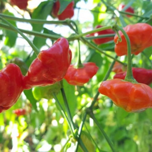 This is one beautiful chili with a shape much like a sea star. It’s a lovely quirkiness – sort of an unexpected, but well-appreciated twist to the typical rounded chili – and, because of that, it works very well as an ornamental pepper. But unlike many ornamentals that sacrifice nuanced taste for looks, the Brazilian starfish is simply delicious too. They are sweet, almost fruity, with a bold, but eatable level of heat (10,000 to 30,000 Scoville heat units.) Packing looks and flavor makes this chili pepper well sought after by spicy foodies and gardeners alike.